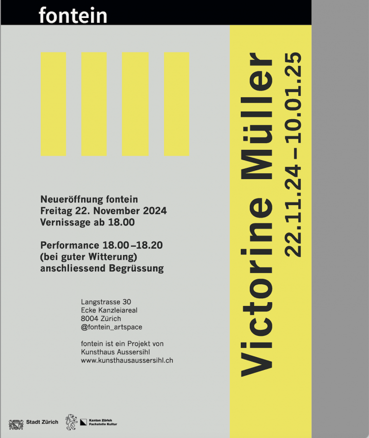 Am Freitag, 22. November 2024 um 18 Uhr eröffnet wir der neue Kunstraum «fontein», kuratiert von den Visarte Mitgliedern Georgette Maag und Wink Witholt, mit der eigens dafür entwickelten Lichtinstallation «Le mouvement végétatif» der Zürcher Künstlerin Victorine Müller. Für mehr Infos klick hier.